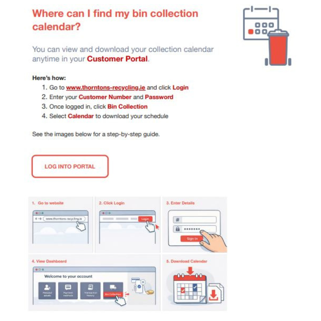 We will send out our welcome pack to you via email on the day you sign with us. Information such as your area bin collection schedule, contents to place in your bins, and contact details to reach us will be included in the pack. We will then deliver your Thorntons Recycling bins to you within five working days, if not sooner. If you have a smartphone then why not download our app and track your account weekly? The App also contains your collection schedule.
